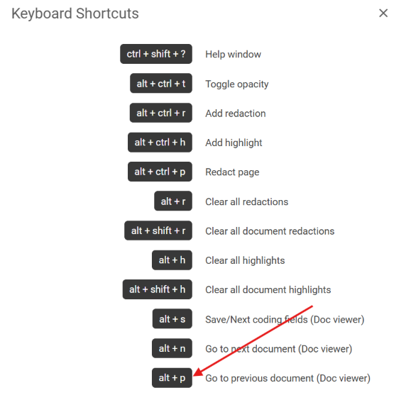Added the ability to useAlt + Pto navigate to the previous document in the Document Viewer. This shortcut has also been added to the Keyboard Shortcuts (opened from the Nebula menu Action icon). - Permissions for Tags