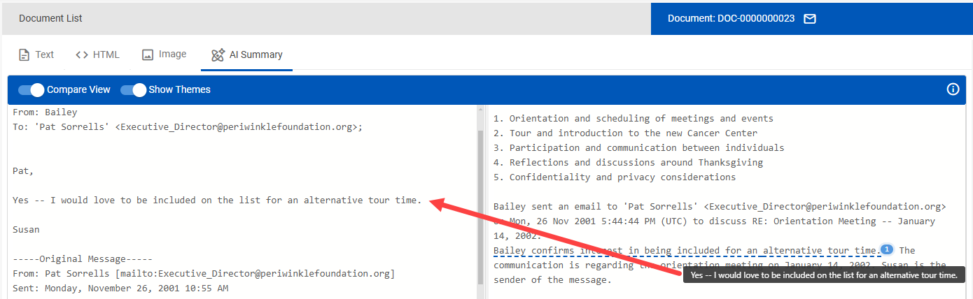 - To view the source text alongside the AI Summary, toggle Compare View.
